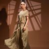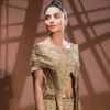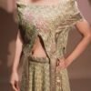 A must-have ikkat print co-ord Dress inspired from arabic textures. Upper is oversized bagie fit offshoulder top and the bottom is a flared skirt can be tied up in multiple ways that looks stunning on all versatile body. The arabic inspired motifs and zardouzi work gives it a very luxurious and rich look bringing out the stylish diva in you.