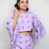 Handwoven with organic sustainable fabric blended with natural handpainted effects with motif of very unusual akondo the arsh to its beauty is perfect for summer and winter – an All season garment. This short crop top with a beautiful fluttered sleeves is appropriate for all occasions.